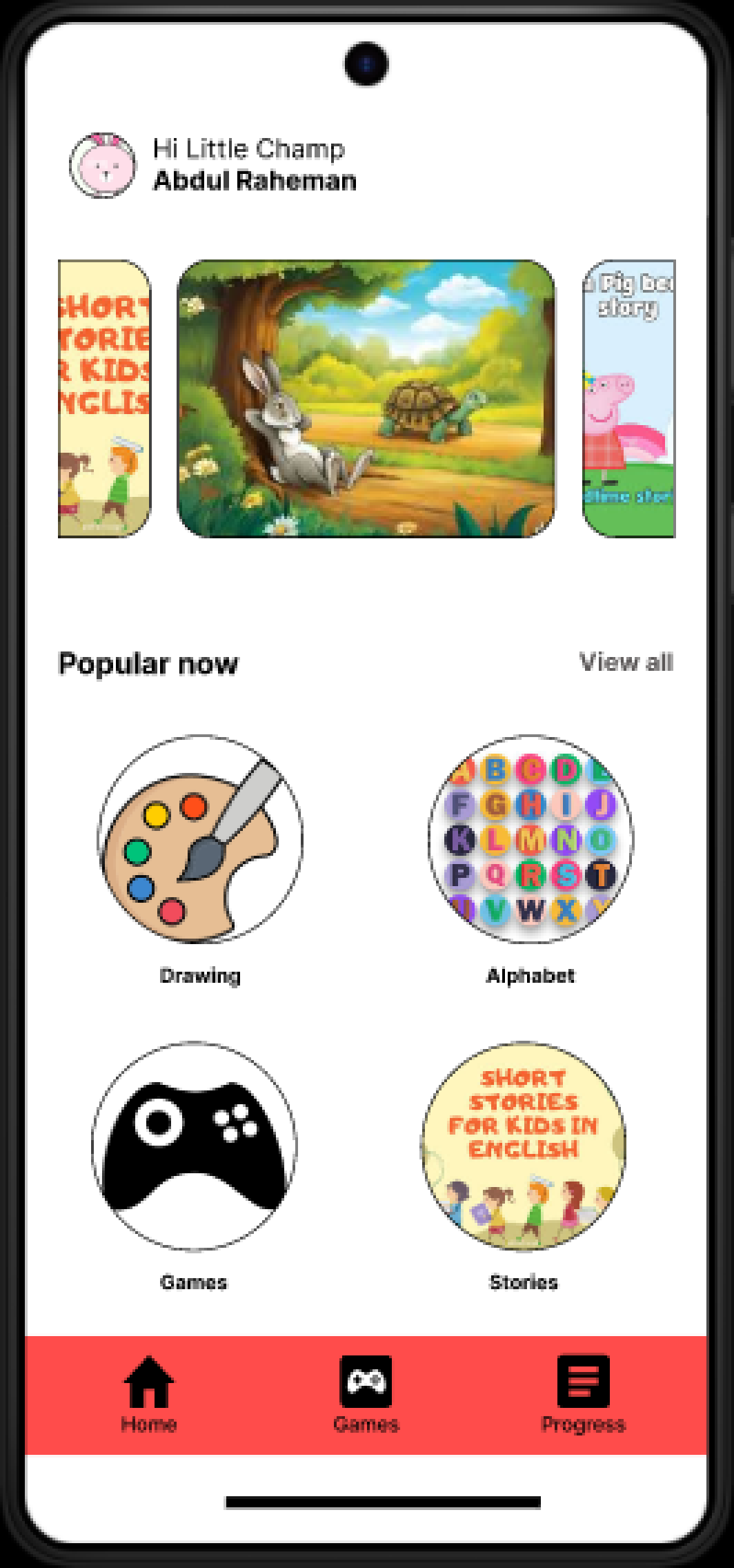 Use fun, colorful icons, characters to attract the child.